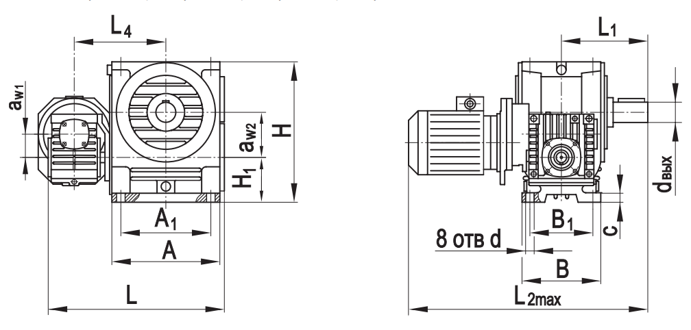 Габаритные размеры редуктора на фланце