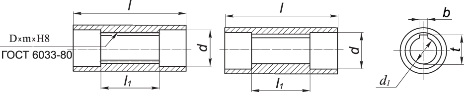 Присоединительные размеры полых валов редукторов Ч2-40 – Ч2-160 (2 варианта)