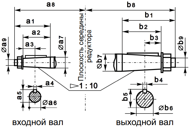Размеры конца тихоходного вала в виде зубчатой полумуфты